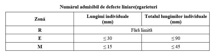 - ≤ 1,0 mm/m în cazul elementelor cu o lungime continuă < 50 cm.